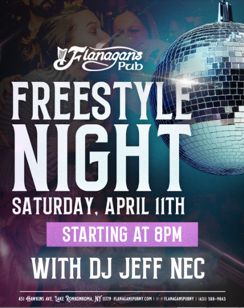 Favorite0Get ready for a night of throwbacks, dancing, and nothing but good vibes! 📅 Saturday, April 11 📍 Flanagan’s Pub 🕗 8PM 🎧 Music by DJ Jeff Nec Round up
