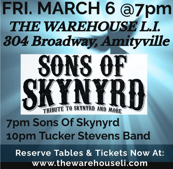 Favorite0Southern Rock Night is back at The Warehouse on March 6th β and itβs going to be a full night of powerhouse performances! π Sons Of Skynyrd β 7:00 PM