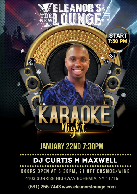 DJ Curtis H. Maxwell is back on stage at the New Eleanor’s Lounge, bringing an incredible night of karaoke, singing, and dancing entertainment.