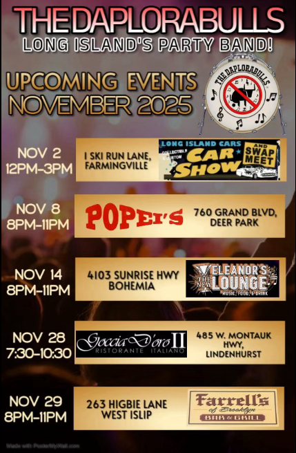 Join Long Islandโs Party Band, The Daplorabulls, for an incredible night of music, dancing, and fun!