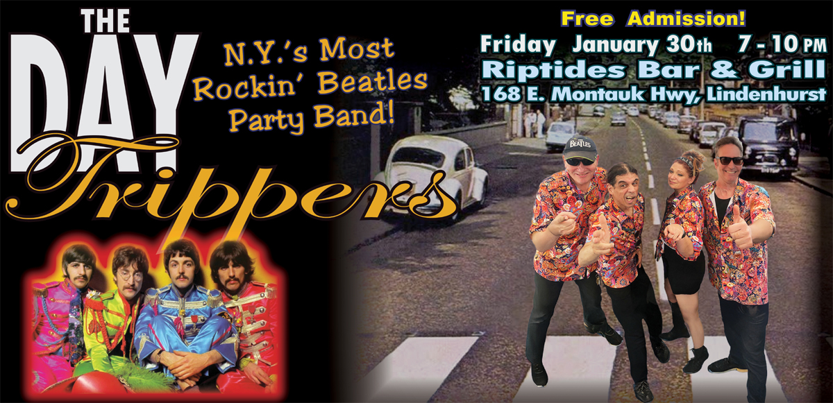 Live Beatles Dance Music! – Friday January 30th, at Riptides Cocktails & Grill – Lindenhurst 7-10 PM Get ready to twist and shout with the Day Trippers! Join us for a night of timeless music, dancing, and fun!