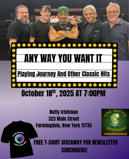 Saturday October 25th, Free Beatles Show at the beautiful Vern Restaurant & Bar by the water in West Babylon. 7-10 PM. Hang at the huge bar, or for dinner reservations,