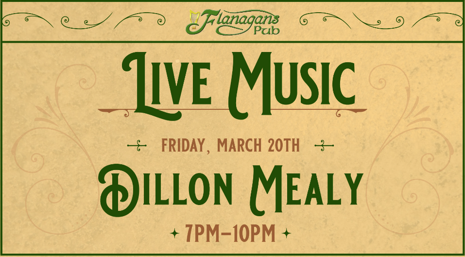 Join us for a great night of live music with Dillon Mealy! ๐ Friday, March 20, 2026 โฐ 7 PM โ 10 PM ๐ Flanaganโs Pub Show up early, grab