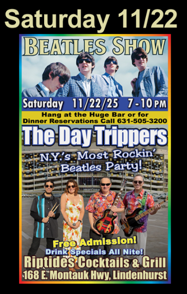 READ MOREFavorite0Saturday – November 22nd, Beatles Music 7-10 PM – No Cover Riptides – In Lindenhurst – “A splendid time is guaranteed for all!”