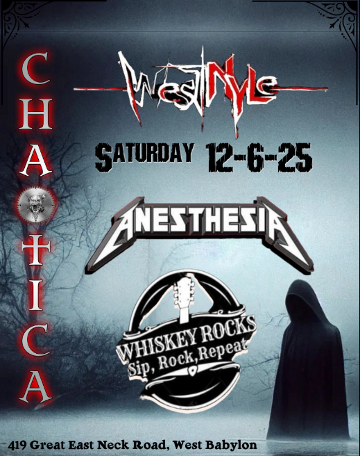 READ MOREFavorite0π Saturday, December 6, 2025 π 7:00 PM π Whiskey Rocks π Three Local Powerhouses Collide! π πΈ Chaotica π₯ Anesthesia β‘ Westnyle Get ready for an unforgettable night of