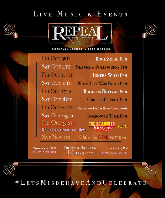 Get ready for a night of great music, drinks, and good vibes as Cripple Creek takes the stage at Repeal XVIII! 🗓️ Date: Saturday, October 18, 2025 🕗 Time: 8